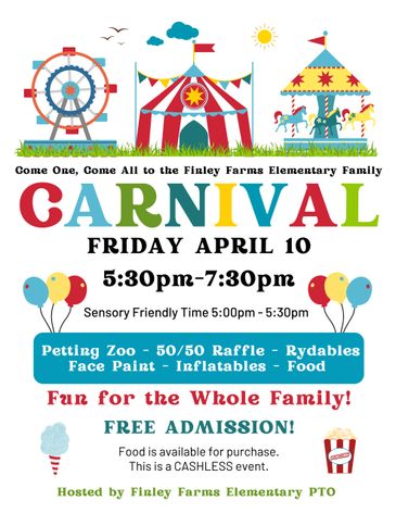 This is the place to join the PTO, reach out to us, and stay in the loop on fundraisers, events, and volunteer opportunities at our school. Whether you're a new or returning member, we invite you to use this site as your go-to guide for everything happening at Finley Farms. Check back often to see what your Falcons are up to—and how you can be part of the fun!